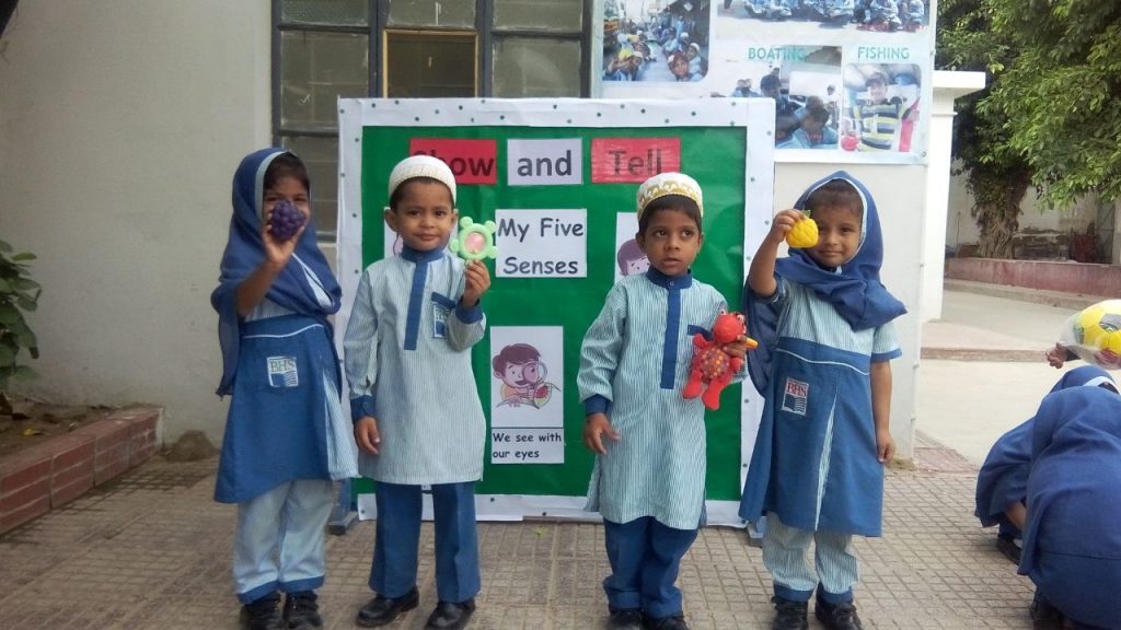 Students of Junior B had brought objects related to the five senses for ‘Show and Tell’. There was an array of things to be seen, heard, felt and yes some to be smelled and tasted too! They also showed how all the senses were involved in Noha and Aweel on Imam Husain A.S.