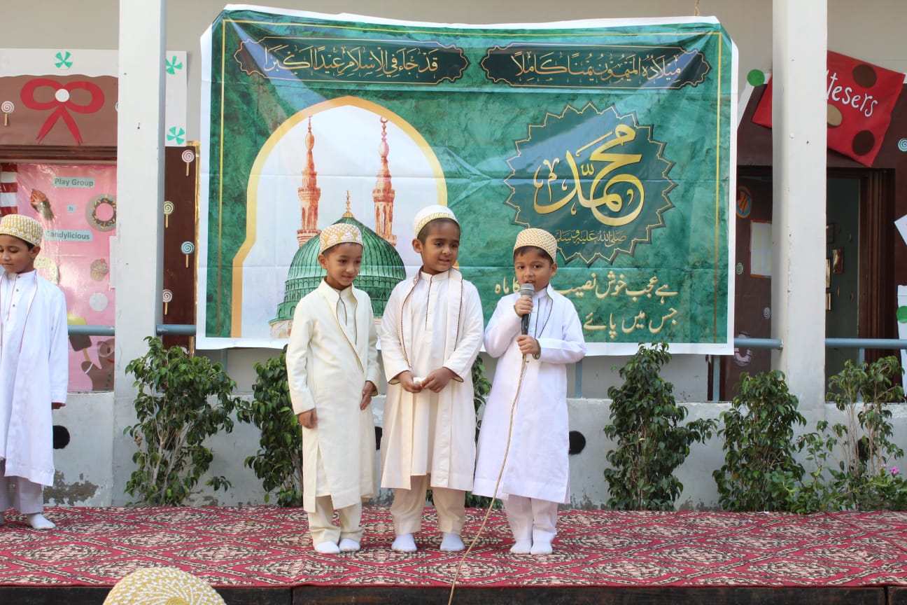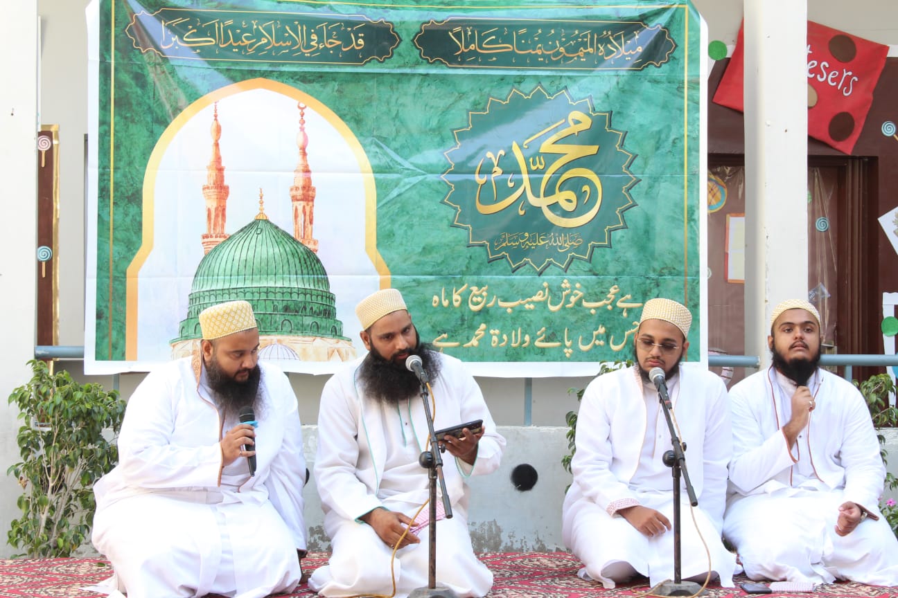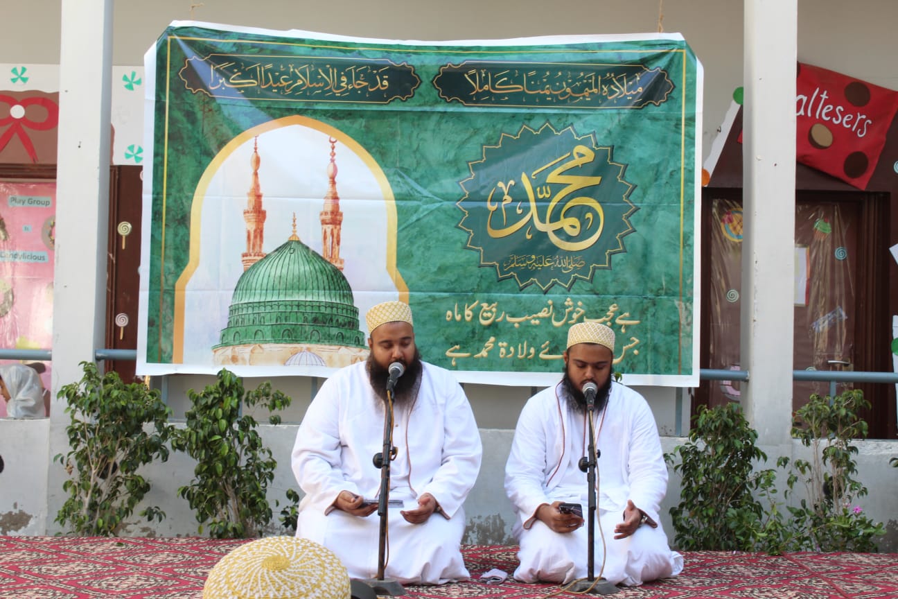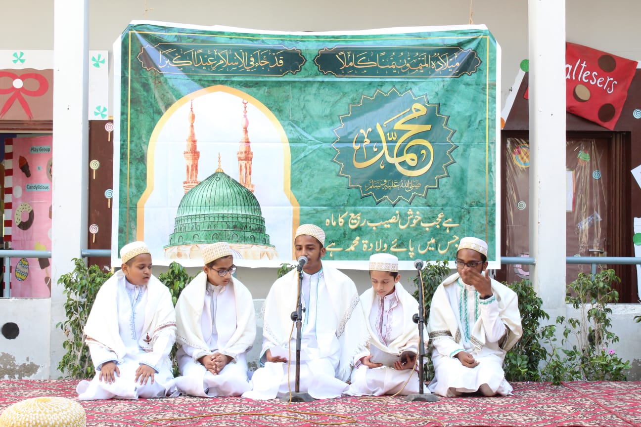 On the blessed day of Milad u Nabi, Friday 7th October 2022, a grand Naat competition multiplied the bounties of the day. The students had been eagerly preparing since two weeks and initially 25 teams from Grades 5-10 had competed for the first elimination round. 11 teams made it to round 2 and the top 7 recited on Milaad day. The judges for the occasion were Mufaddal bhai Siraj and Mustafa bhai Kapasi who are renowned Zakireen and the pride of Al Mohalatul Burhaniyah. Also invited were ex-students of BHS and popular zakireen Taha Murtaza and Ammar Mustansir.