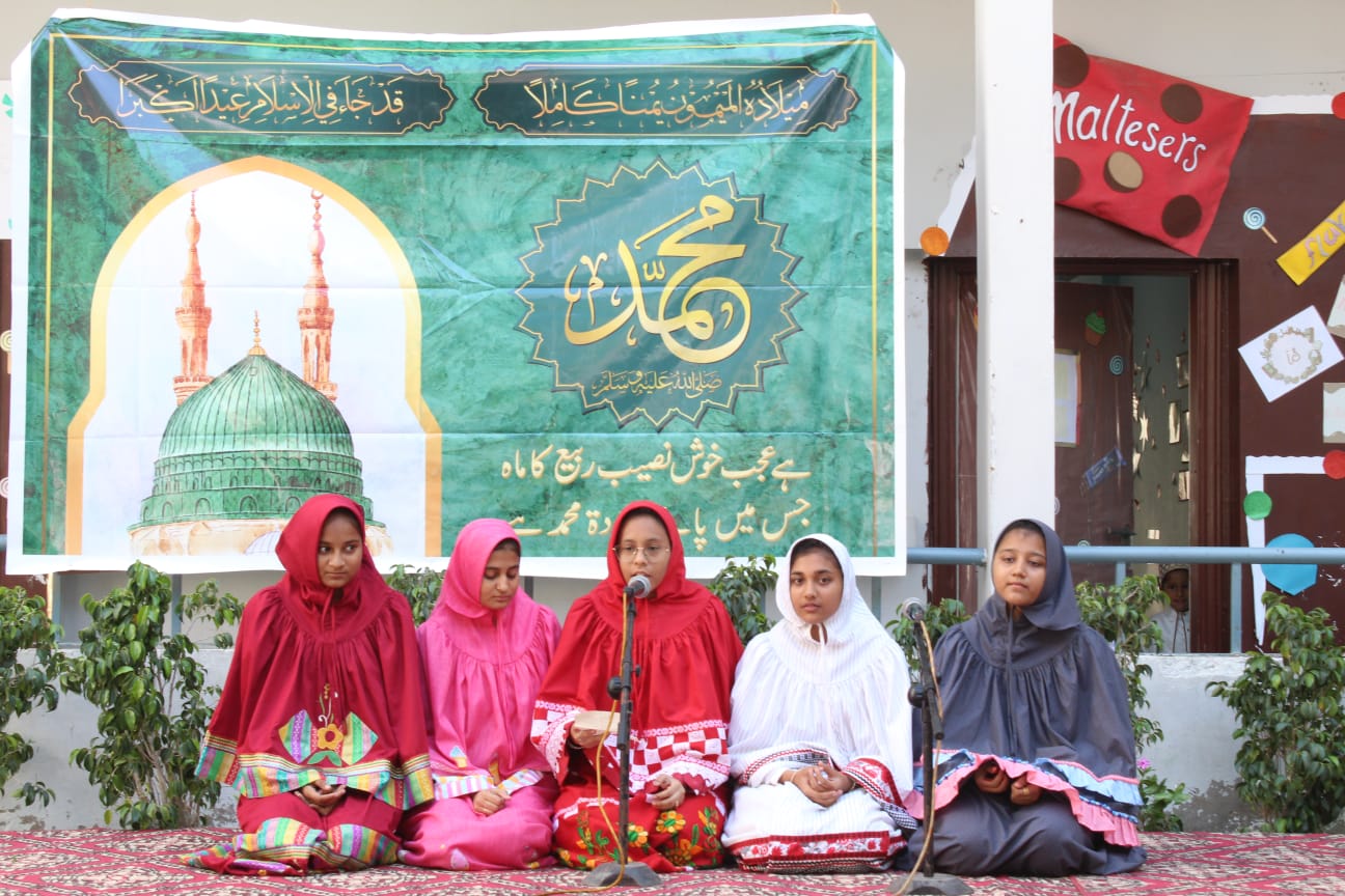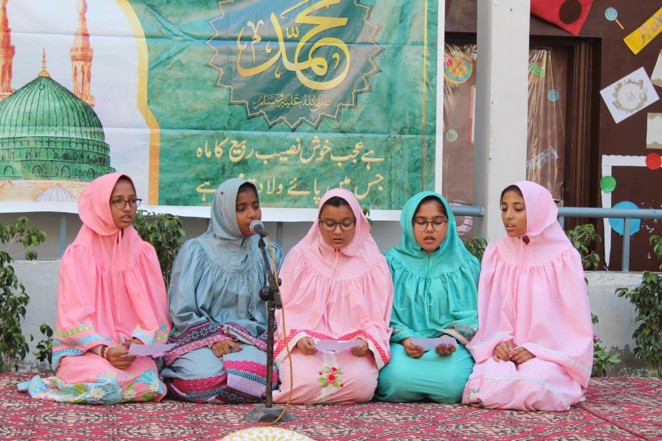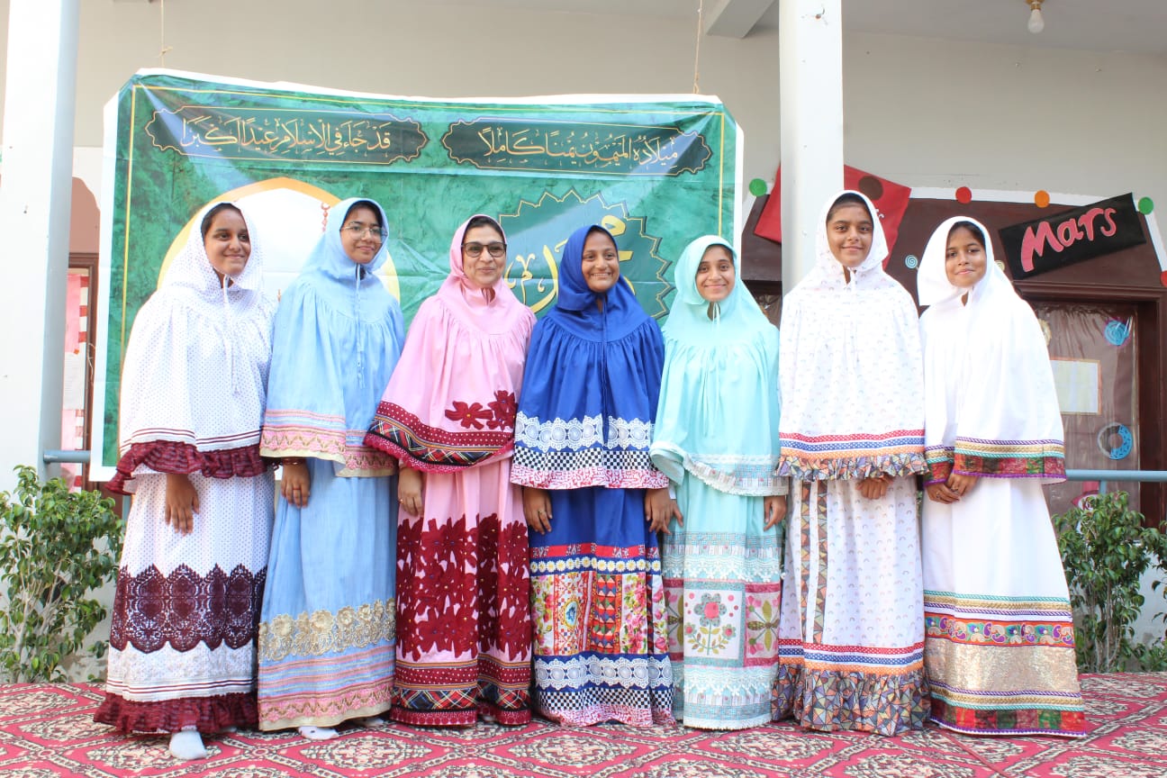 The teams which emerged victorious were Ahmar led by Sakina M. Yousuf (Class 10) and her group, second were Zamarud led by UmeKulsoom Amir and Zainab Murtaza (Class 10) and third was Zainy led by Alefiya Aliasghar (Class 10). The little ones of the Pri-Primary also presented a summary of Rasulallah’s SAW inspiring life accompanied by speeches from the Primary and Secondary students on how we should be following the footsteps of Rahmat ul Lil Aalameen SAW to lead a prosperous life in this world and the hereafter. The two hour program was the perfect beginning to the auspicious day and the children, dressed in Libaas ul Anwar went back to their classes to continue their learning.
